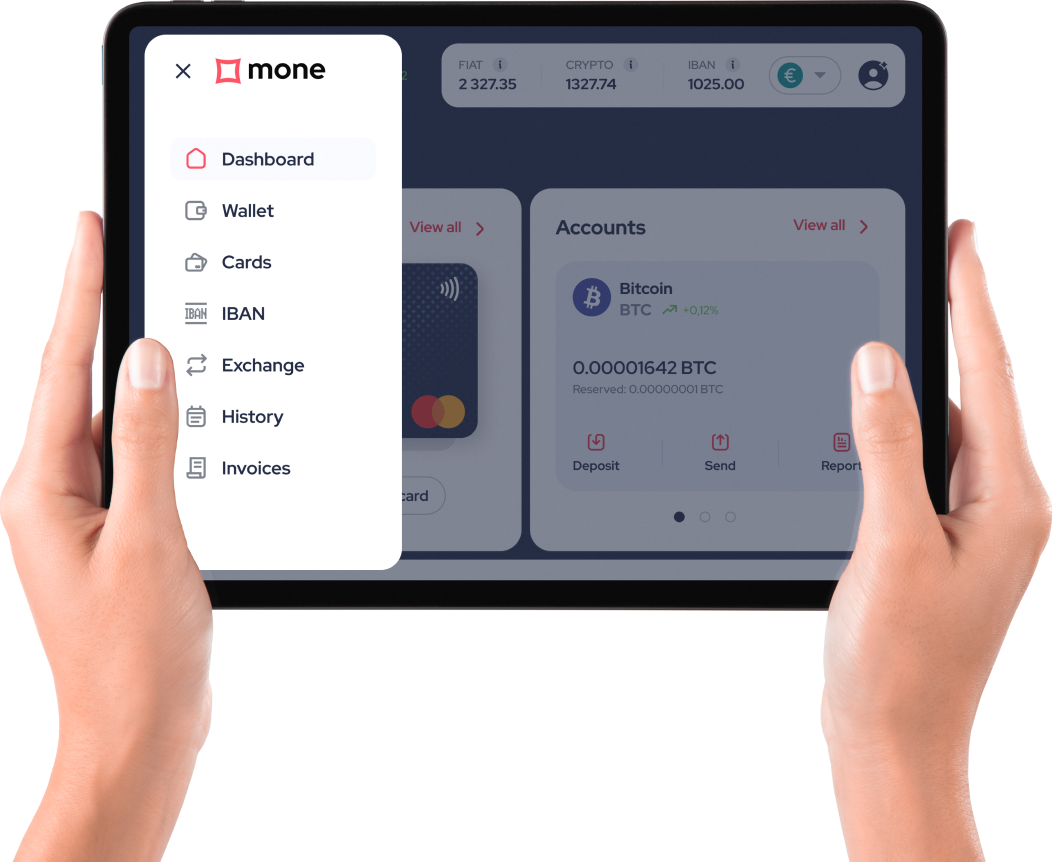 The most important priority of the MONE Finance is to comply with all AML requirements in accordance with European legislation. We pay special attention to ensuring a high level of security for the financial transactions of our platform.
